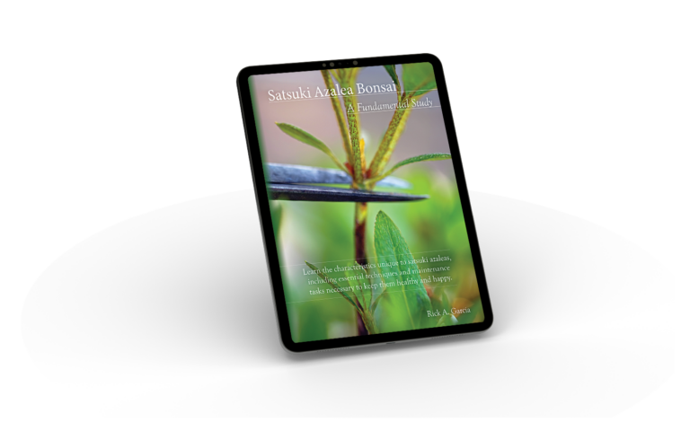 Find the electronic version on the Apple Book Store and on Kobo. Search for “Satsuki Azalea Bonsai: A Fundamental Study“ on Apple, or “Satsuki Azalea Bonsai“ on Kobo.